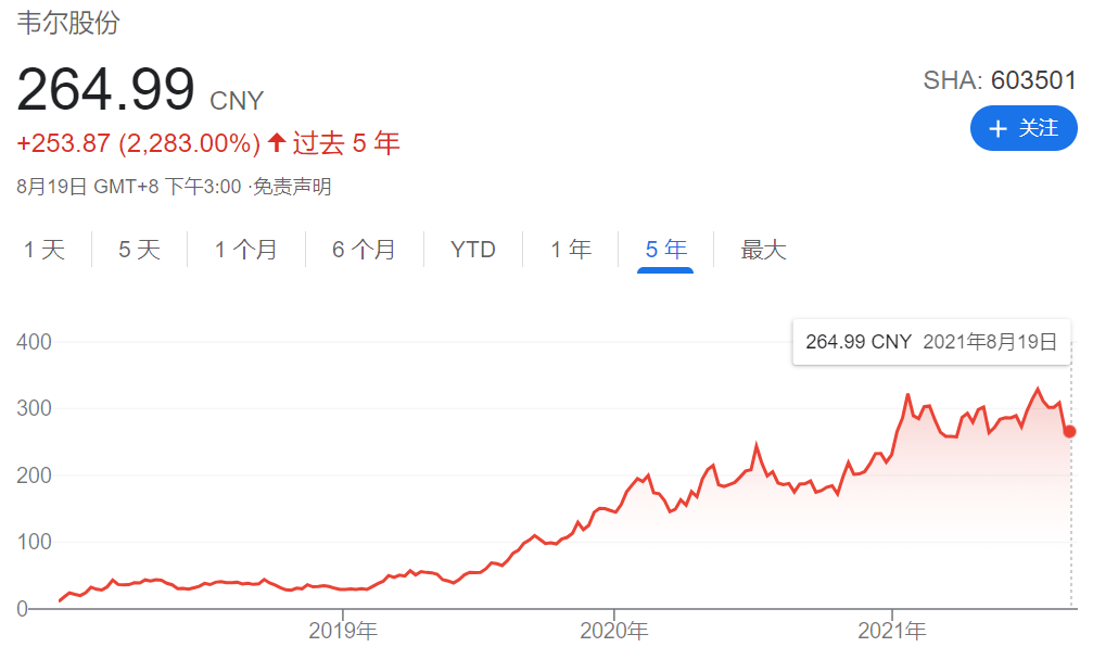 而在2018年韦尔股份收购豪威科技之前,它只是一家专注于功率分立器件和电源IC等产品的公司,但是自从收购豪威科技和思比科之后,CIS有关业务为韦尔股份带来了巨大的收益,实现了四年股价翻10倍的业绩飞跃。