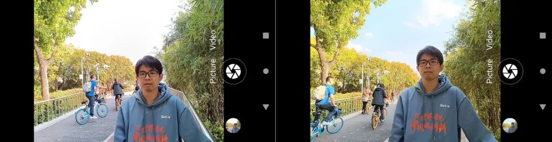 拍照:通过多重曝光,同场景拍摄2-3个曝光时间不同的画面——短曝光抓取亮处细节,长曝光补充暗处细节,然后合成一张动态范围更广的图片。