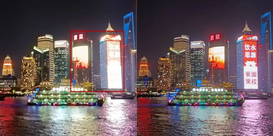 左图:多帧合成拍照(运动伪像)右图:DAG HDR