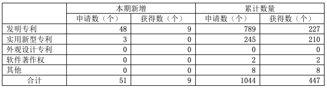 报告期内,公司申请发明专利 48 件,实用新型 3 件;授权发明专利 9 件。截至 2023 年 6 月 30