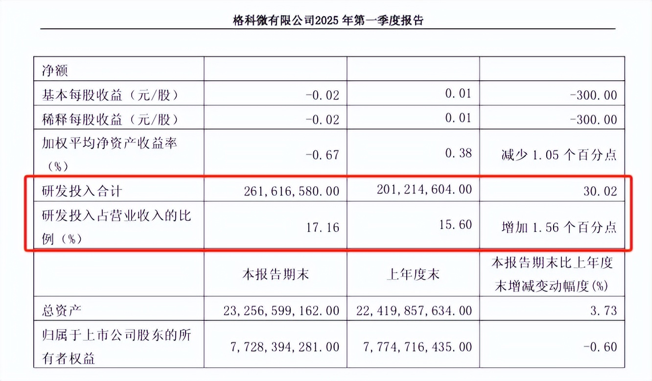 更深的裂缝藏在财报细节中。2022年至2023年,格科微的归母净利润接连遭遇暴跌;2025年一季度,在研发投入激增的背景下,公司更直接陷入亏损状态。