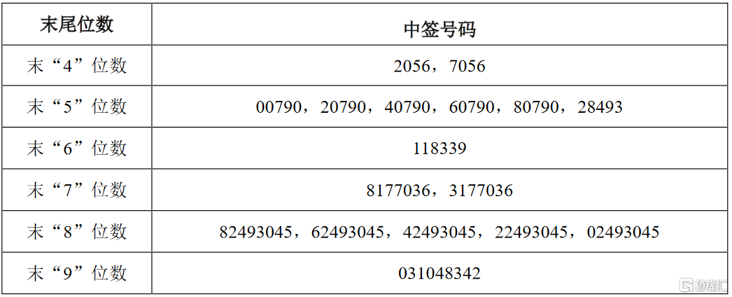 凡参与网上发行申购壹石通股票的投资者持有的申购配号尾数与上述号码相同的,则为中签号码。中签号码共有 31294个,每个中签号码只能认购500股壹石通股票。