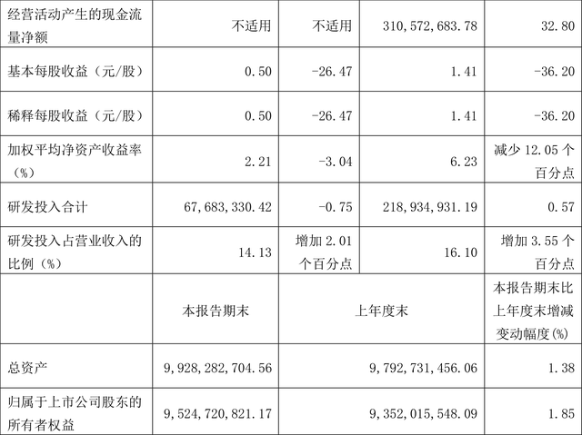 成大生物(688739)10月25日披露2022年第三季度报告。2022年前三季度,公司实现营业总收入13.60亿元,同比下降21.60%;归母净利润5.89亿元,同比下降28.90%;扣非净利润5.28亿元,同比下降36.56%;经营活动产生的现金流量净额为3.11亿元,同比增长32.80%;报告期内,成大生物基本每股收益为1.41元,加权平均净资产收益率为6.23%。
