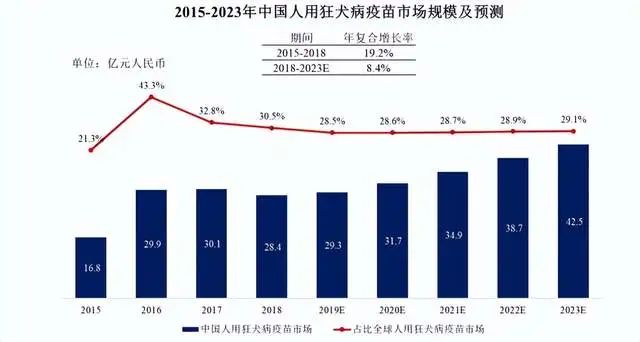 从行业看,狂犬病疫苗市场的市场规模不大,且后市想象力不足。机构预测,到2023年,我国人用狂犬病疫苗市场的销售收入预计将达到42.5亿元人民币。