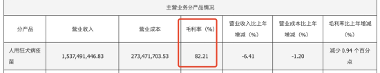但2022年以来,随着市场竞争加剧与集采压力,查询“约苗”显示,其核心产品——冻干人用狂犬疫苗产品价格从215元/人份腰斩至70-130元。2024年年报显示,人用狂犬病疫苗的毛利率下滑至82.21%。