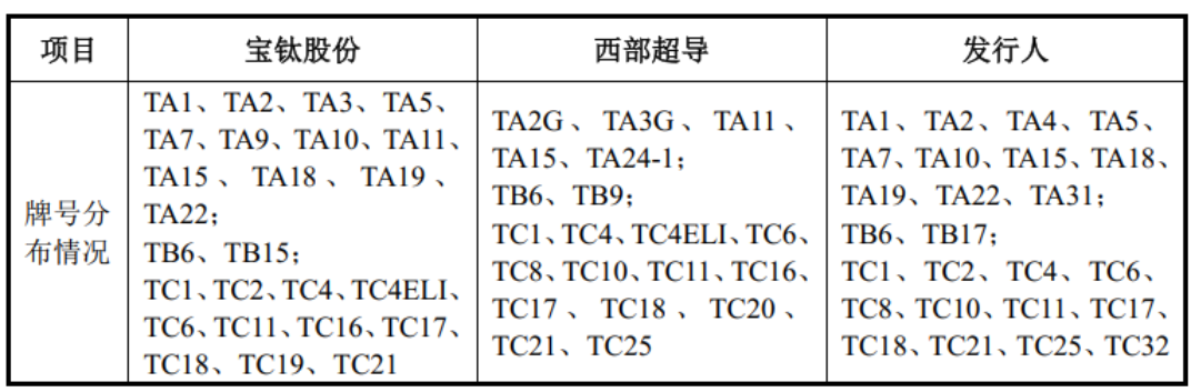从品类看,金天钛业、宝钛股份和西部超导在主要牌号产品覆盖上基本一致,只不过重心各有侧重。