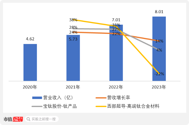 因此我们看到,虽然净利润接近20%,但金天钛业2023年营收只有8.01亿,净利润1.47亿,规模相对较小。
