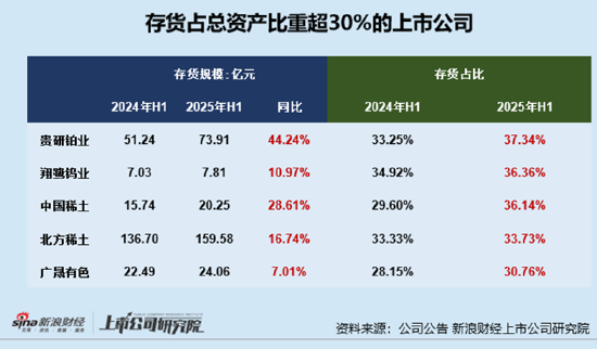 在我们所选取的工业金属公司中,2025年上半年,从存货规模及存货占总资产比例变化来看贵研铂业存货占全部资产的比重较高,约为37.34%;金天钛业的存货周转效率最低,据wind资讯数据,公司存货周转天数高达330天。