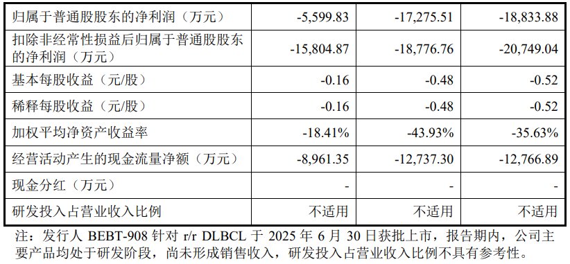 财务方面,于2022年度、2023年度、2024年度,公司净利润分别约为-1.88亿元、-1.73亿元、-5599.83万元人民币。必贝特表示,公司目前尚未盈利,为推进在研产品管线研发进展,公司预期未来仍需要较大规模的持续研发投入,研发费用将持续处于较高水平,公司短期内可能无法实现盈利,从而导致公司短期内可能无法进行利润分配或现金分红。