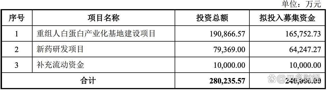 2025年7月,禾元生物上会并顺利通过。招股书(上会稿)显示,禾元生物的募资金额较此前缩水约11亿元。其中,植物源重组人血清白蛋白产业化基地建设项目变更为约16.58亿元,新药研发项目约6.42亿元,补充流动资金为1亿元,均有不同程度的缩减。