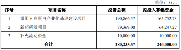 禾元生物2025年10月20日披露的首次公开发行股票并在科创板上市招股说明书显示,公司原拟募资240,000.00万元,用于重组人白蛋白产业化基地建设项目、新药研发项目和补充流动资金。
