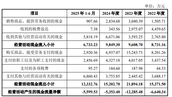 2022年至2024年及2025年上半年,禾元生物营业收入分别为1,339.97万元、2,426.41万元、2,521.61万元、1,271.05万元,净利润/归属于母公司所有者的净利润分别为-14,357.63万元、-18,696.29万元、-15,136.81万元、-8,162.78万元,扣除非经常性损益后归属于母公司所有者的净利润分别为-14,860.51万元、-20,093.95万元、-16,674.74万元、-9,053.53万元,经营活动产生的现金流量净额分别为-6,640.34万元、-12,285.48万元、-5,353.40万元、-5,599.53万元。