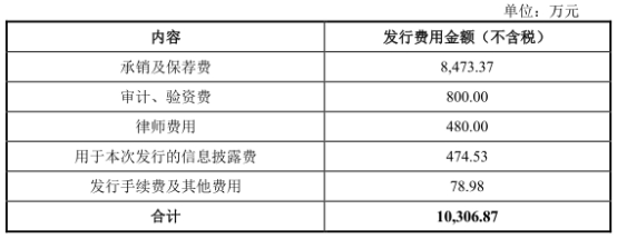 普冉股份本次上市发行费用(不含增值税)合计1.03亿元。其中,中信证券股份有限公司获得承销及保荐费8473.37万元。