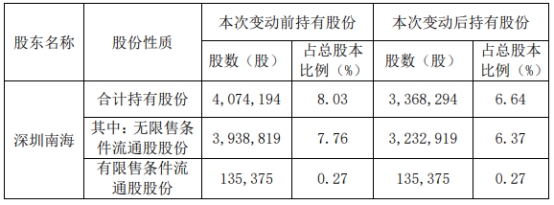 本次权益变动后,深圳南海拥有普冉股权益的股份数量从4,074,194股减少至3,368,294股,占公司总股本的比例从8.03%减少至6.64%。