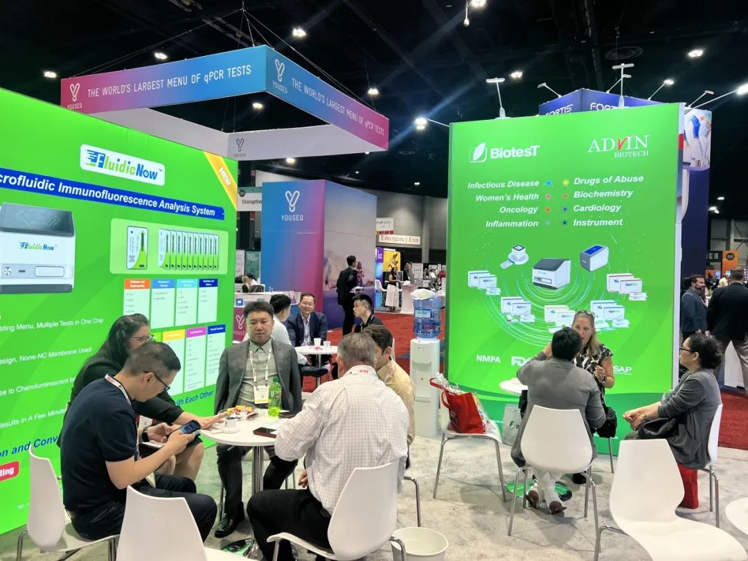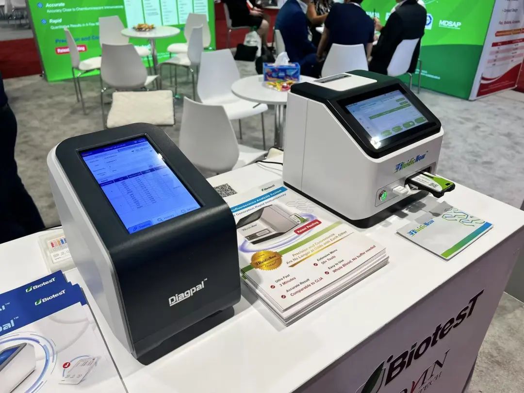 在本届展会上,博拓生物与ADVIN BIOTECH一道发布了一系列新产品、新技术,包括FluidicNowTM微流控免疫检测技术、SalivaTracer系列微量唾液毒品检测、SafeVinTM系列饮料毒品检测、DiagPalTM 系列Lateral Flow Reader、新型呼吸道病原体多联检试剂等,其中大部分新产品为美洲区域首次发布。这些新产品以其前沿的技术和卓越的性能吸引了众多参观者的目光,成为展会的亮点之一。参展期间,FluidicNowTM微流控免疫分析平台尤为引人注目,其集成的高灵敏度传感器、快速反应体系及灵活的检测菜单设计,不仅满足了不同类目实验室的多层次需求,更凭借在急诊重症场景中的卓越表现,赢得了现场专业观众的高度赞誉。