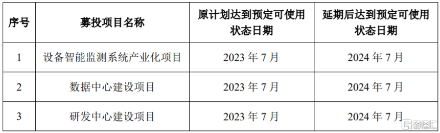 格隆汇2月16日丨容知日新(688768.SH)公布,公司于2023年2月16日召开第三届董事会第四次会议和第三届监事会第四次会议审议通过了《关于首次公开发行股票募投项目延期的议案》,同意公司将首次公开发行股票募集资金投资项目,即“设备智能监测系统产业化项目”、“数据中心建设项目”和“研发中心建设项目”达到预定可使用状态的日期进行延期。此次募投项目延期未改变募投项目的投资内容、投资总额、实施主体,不会对募投项目的实施造成实质性影响。具体如下:
