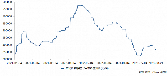 2022年,以钴酸锂为代表的主要原材料价格较上年增长幅度较高,提高了珠海冠宇产品的单位生产成本。今年以来,钴酸锂价格持续下降。iChoice数据显示,2021年初至今钴酸锂价格冲高回落,近期仍在低位徘徊。