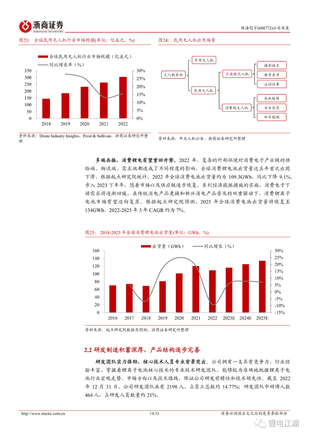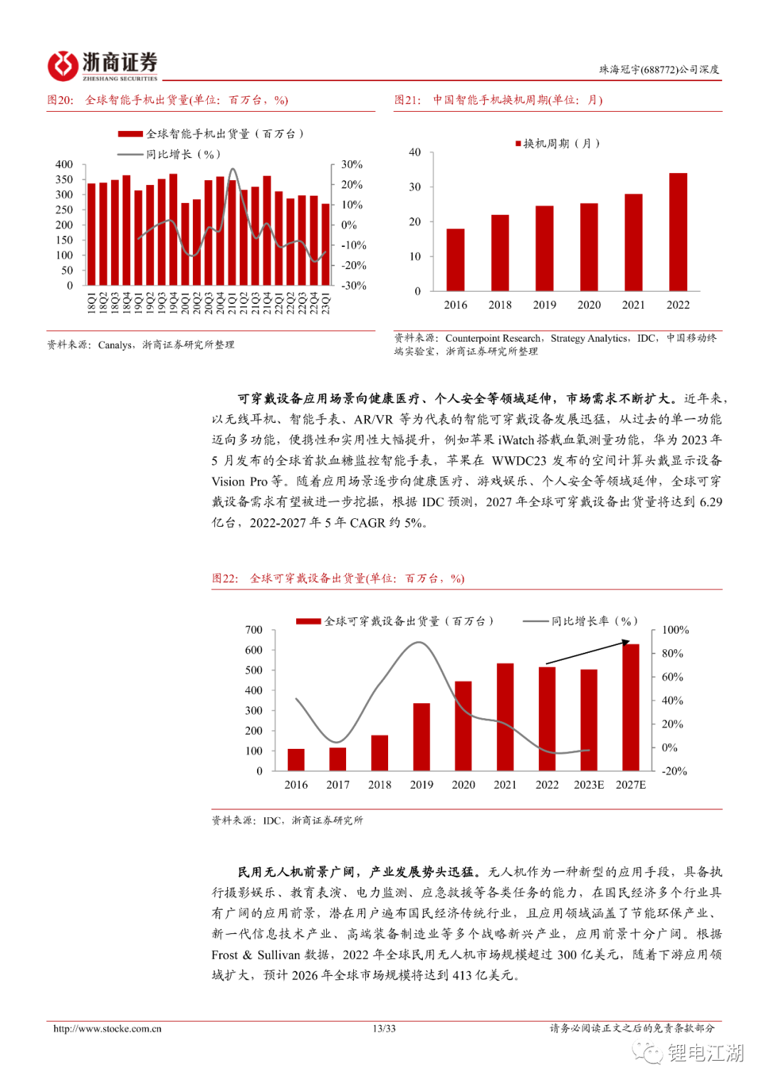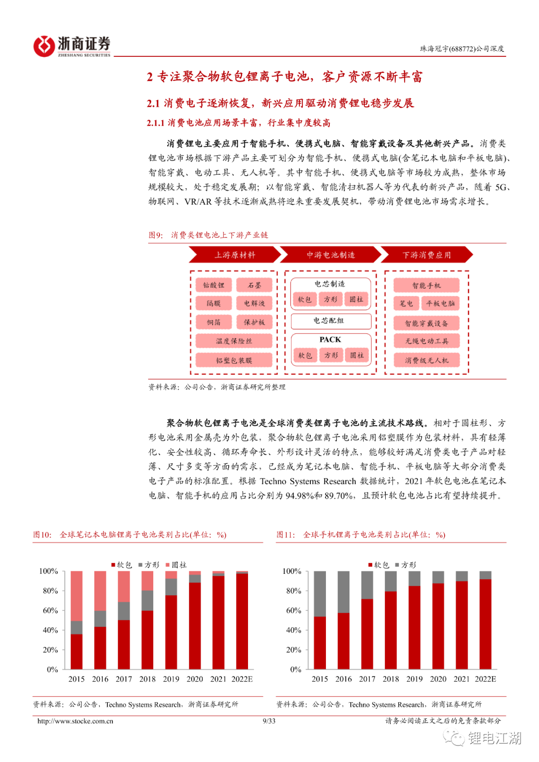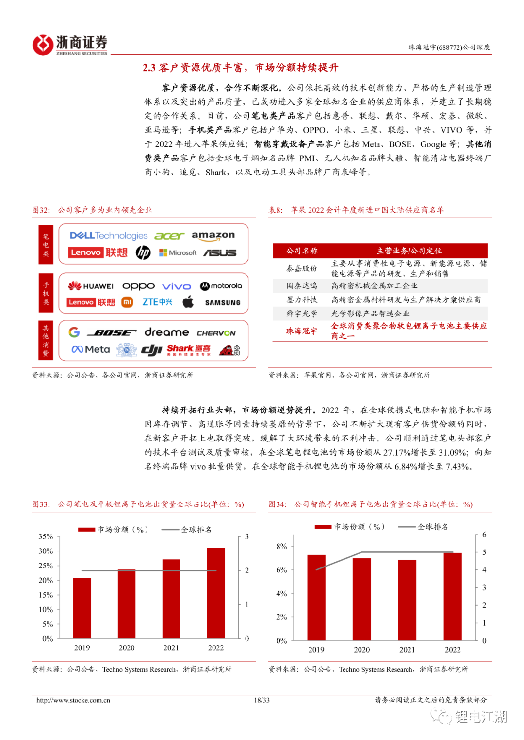 公司消费锂电产品矩阵丰富,拥有包括从手机、笔电、穿戴产品等齐全的产品线,并且实现了从电芯到PACK的全产业链发展布局,已成功进入多家全球知名企业的供应体系。2022年公司向苹果和VIVO实现批量供货,笔电和智能手机电池市场份额分别提升至31.09%和7.43%,全球排名分别为第二、第五。