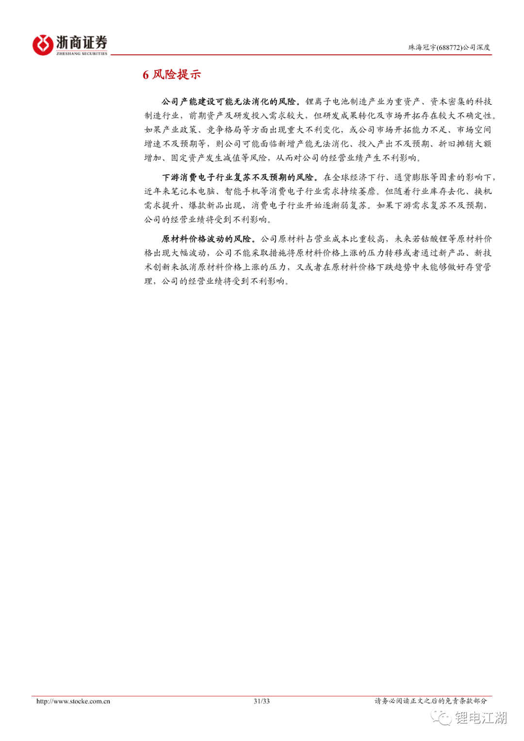 新增产能难以消化;下游行业复苏不及预期;材料价格大幅波动。