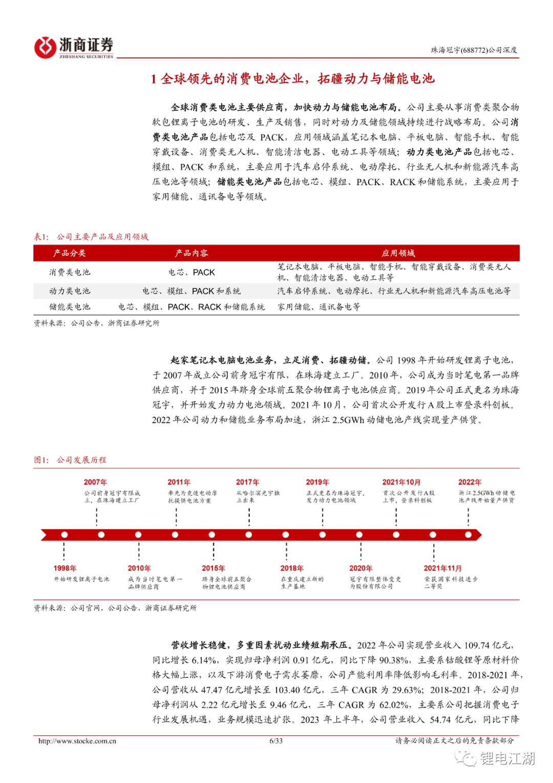 公司是全球消费类电池的龙头,动储电池快速突破。2022年公司实现营收109.74亿元,同比增长6.14%,其中消费类电池占比96%;归母净利润0.91亿元,同比下降90.38%;2023上半年公司营业收入54.74亿元,同比下降4.59%;归母净利润1.40亿元,同比增长125.06%,受益于二季度全球笔电出货量回升、美元兑人民币汇率上升、材料价格下降、限制性股票激励确认的股份支付费用减少等。