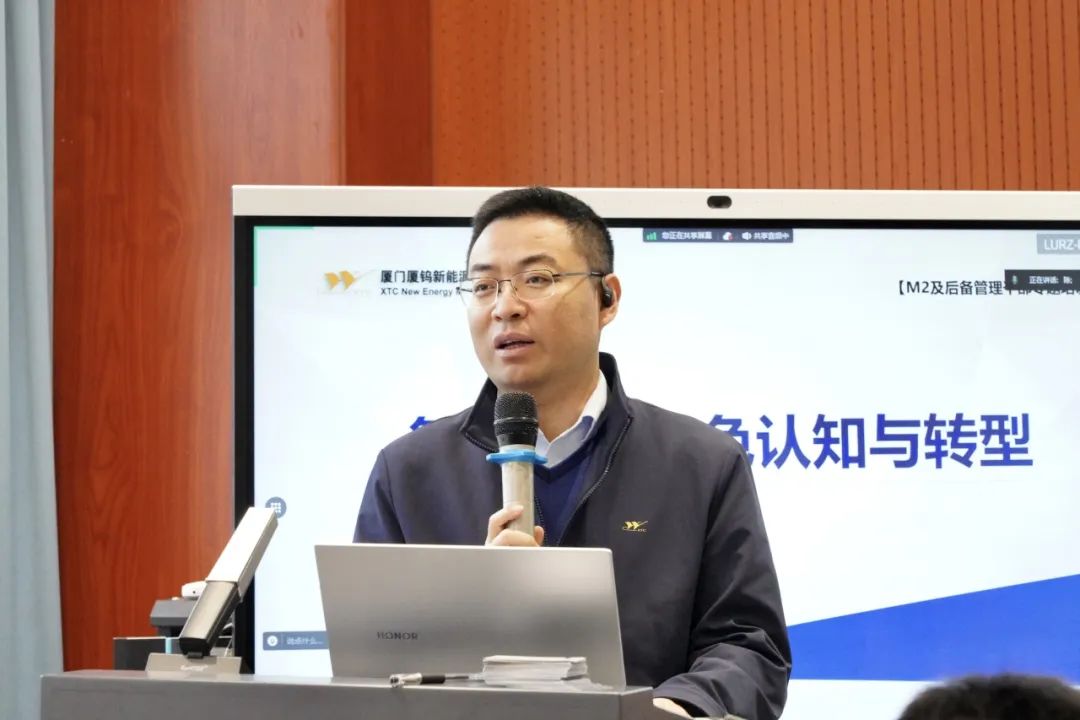 公司党委副书记、总经理姜龙为学员们讲授开班第一课《管理者角色认知与转型》。姜总立足公司发展目标,结合自身管理经验,从公司管理文化、如何当好一名管理者和管理艺术等多个维度展开深入讲解。他强调,公司将持续配套后备人才的关注和激励机制,充分激发人才梯队活力。他希望后备管理干部以时不我待的精神和舍我其谁的担当,在两年的培养历程中,突破思维局限,探索学习深度,为管理提效和公司发展贡献才智,完成从个人视角到团队视角的迭代提升、从个人管理到团队管理的角色蜕变,为厦钨新能实现人才强企战略目标做出积极贡献。