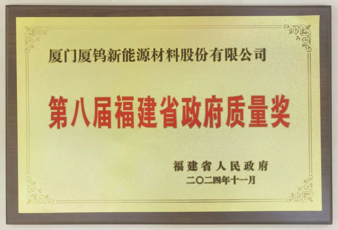 近日,第八届福建省政府质量奖名单正式公布,厦钨新能荣获福建省政府质量奖。