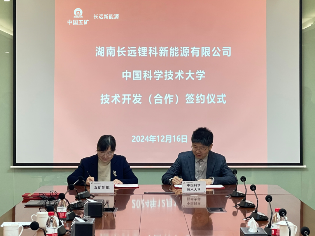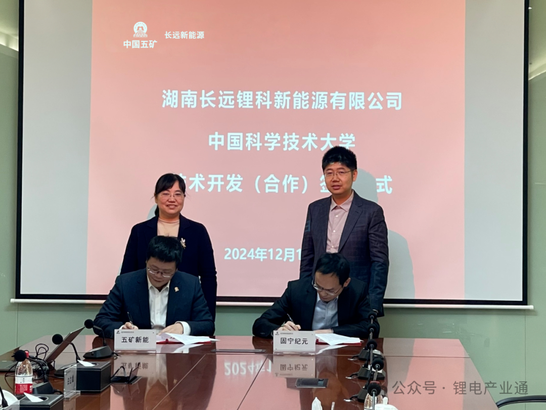 【驿站快讯】12月18日消息,五矿新能源材料(湖南)股份有限公司,在12月16日,与中国科学技术大学马骋教授科研团队,及其创立的合肥固宁纪元新能源科技有限公司签约全固态电池的正极材料、全固态电池开发合作。