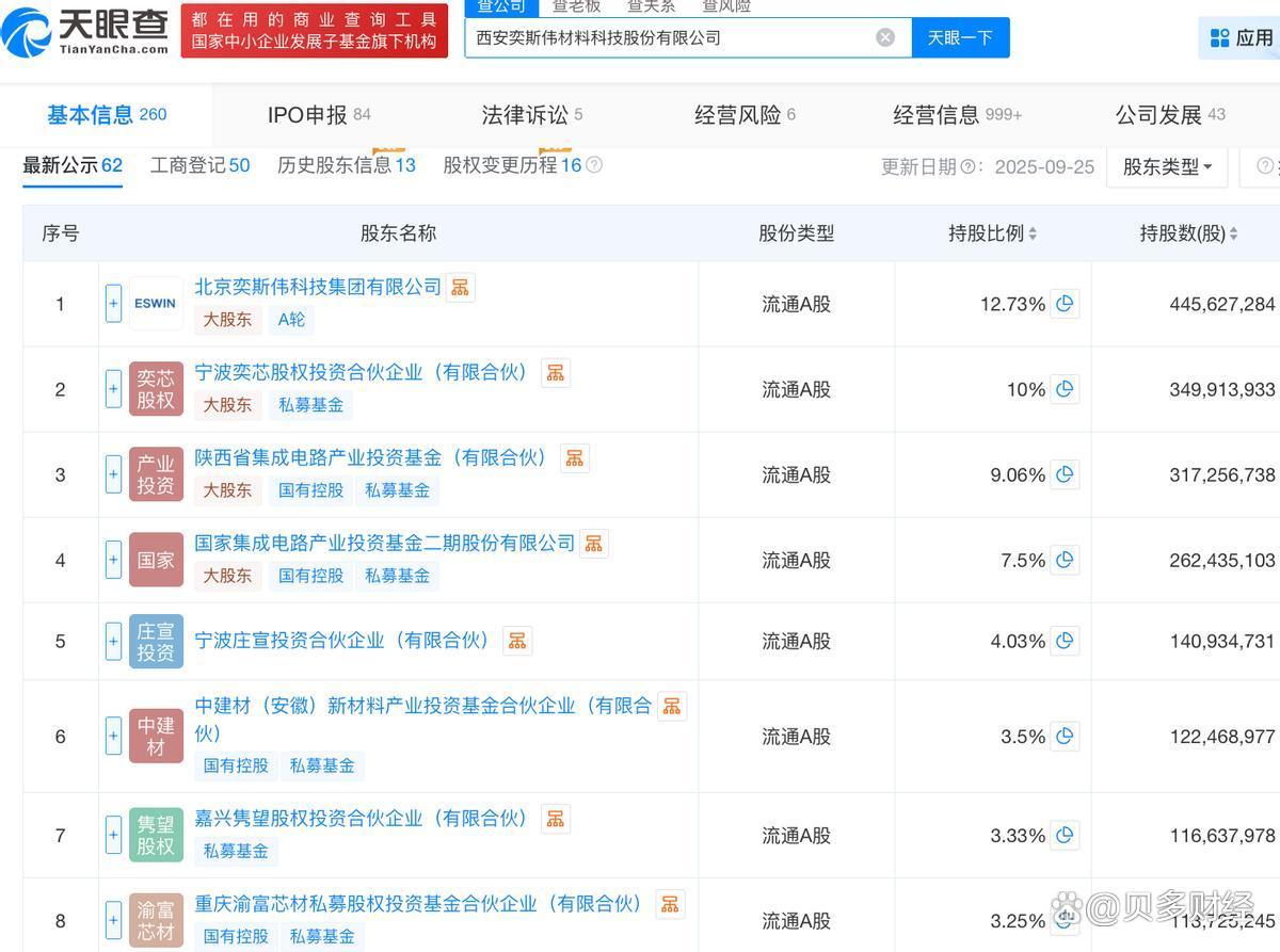 天眼查App信息显示,西安奕材成立于2016年6月。目前,该公司的注册资本为35亿元,法定代表人为杨新元,主要股东包括奕斯伟集团等。