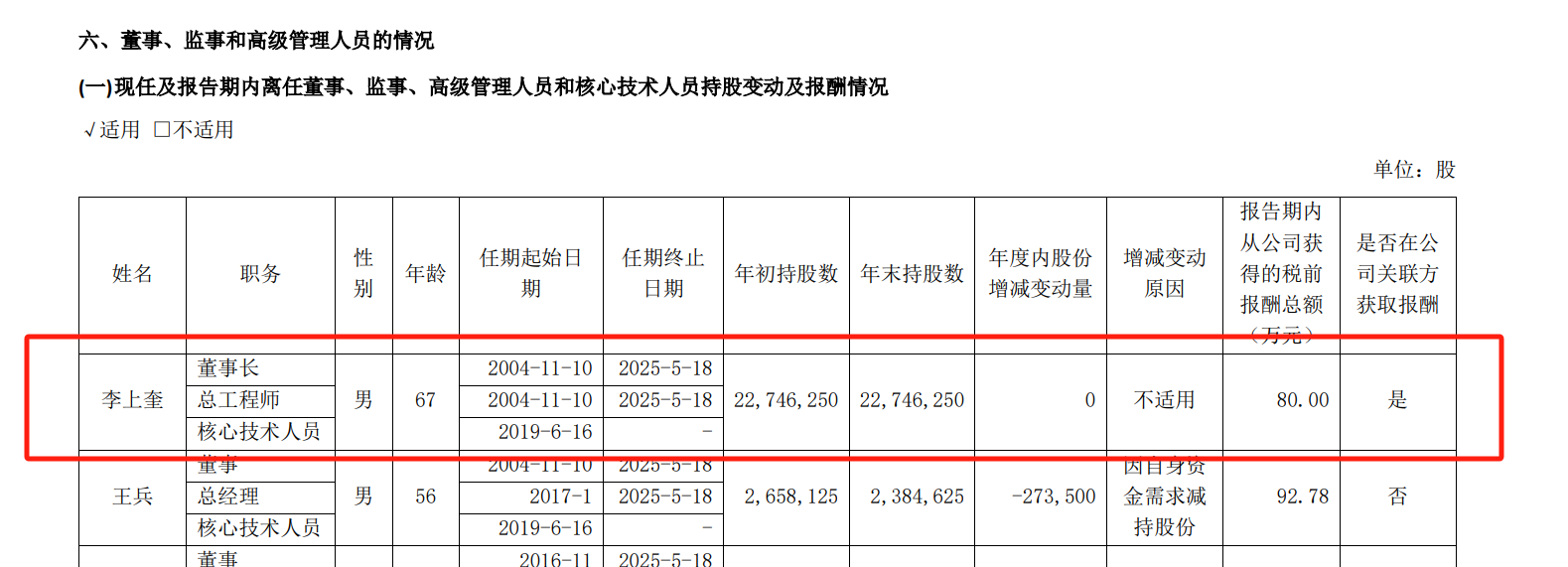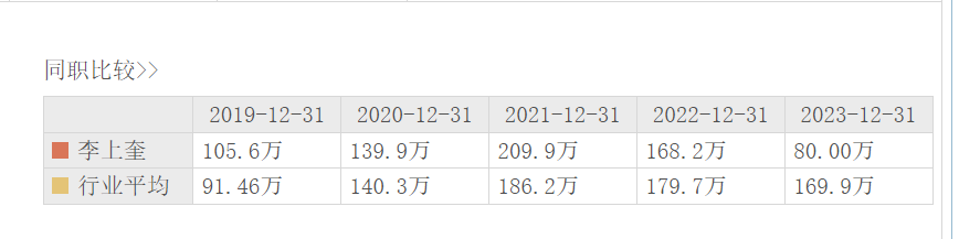 悦安新材董事长为李上奎,2023年其从公司获得的税前报酬总额为80万元,较2022年同期的约168.2万元,下滑52%。其薪酬曾于2021年高达209.9万元。
