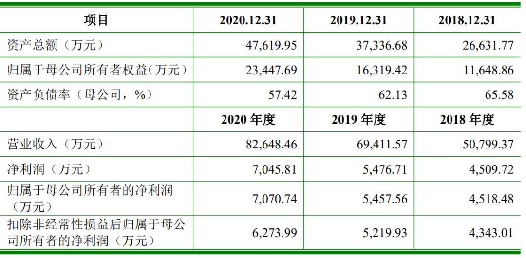 同期扣非后净利润分别为4343.01万元、5219.93万元、6273.99万元,2019、2020年增速均为20.2%。