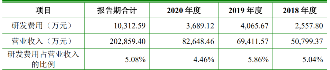 首先是研发投入,2018-2020年,倍轻松的研发费用分别为2557.8万元、4065.67万元、3689.12万元,合计1亿出头。分别占营收比例5.04%、5.86%、4.46%,2020年下降似乎比较多。