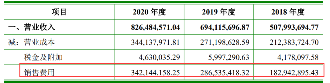 2018-2020年,倍轻松的销售费用分别为1.83亿元、2.87亿元、3.42亿元,蜜姐大致算了下,同期占营收比重分别大概为36%、41.%、41%,占比较重且有逐年上升趋势。