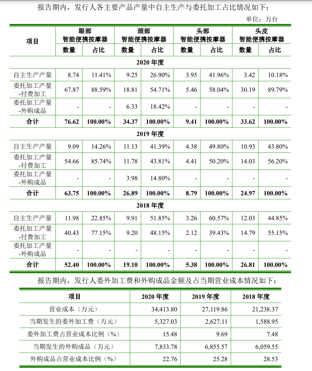 公开数据显示,倍轻松2020年全年共售卖售卖产品154.02万台,其中自主生产产量25.36万台,仅16.5%,委托加工产量高达128.66万台,对应的便是倍轻松2020年全年销量的8成以上。