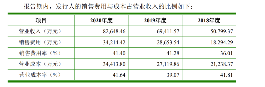 2018年-2020年三年间,倍轻松营销费用分别为1.829亿、2.865亿和3.421亿,营销费用率更从2018年的36.01%上涨至41.40%。