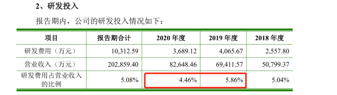 但在研发方面,倍轻松却似乎不重视。2018年-2020年三年间倍轻松研发费用分别为2558万、4066万和3689万,倍轻松研发投入占同年营收的比例,从2019年的5.86%下降至2020年的4.46%。