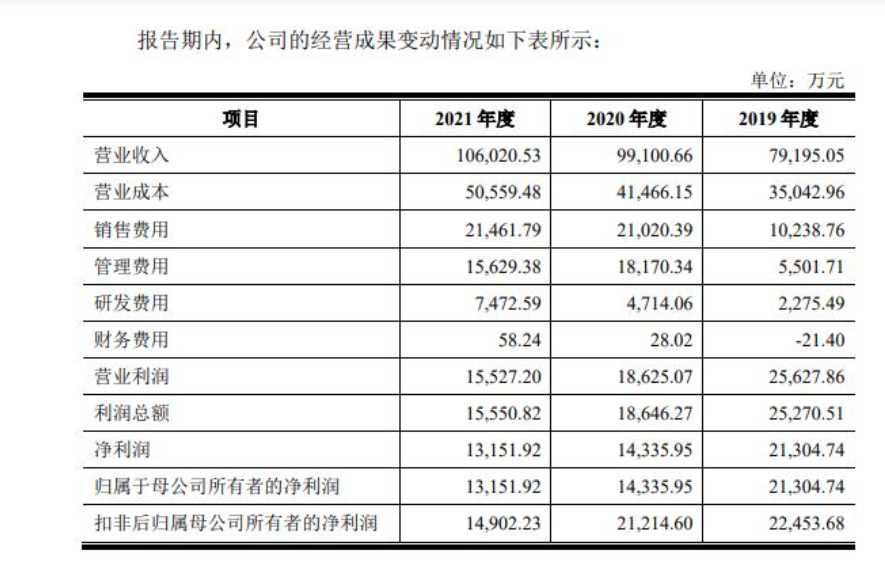 数据显示,2019-2021年,SKG营收分别为7.9亿元、9.9亿元和10.6亿元;归属于母公司所有者的净利润分别为2.1亿元、1.4亿元和1.3亿元,基本态势是“增收不增利”。