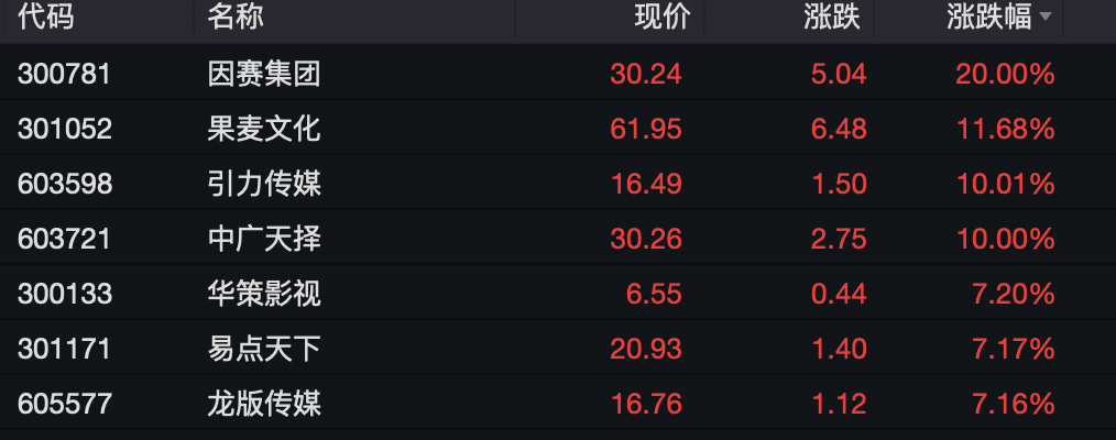 TMT赛道再度逆势上行,传媒板块领涨,板块盘中涨幅超过2%,多股涨停或涨幅超过10%。