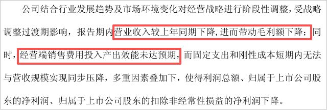 其一,经营战略阶段性调整,营收下滑,带动毛利下降;