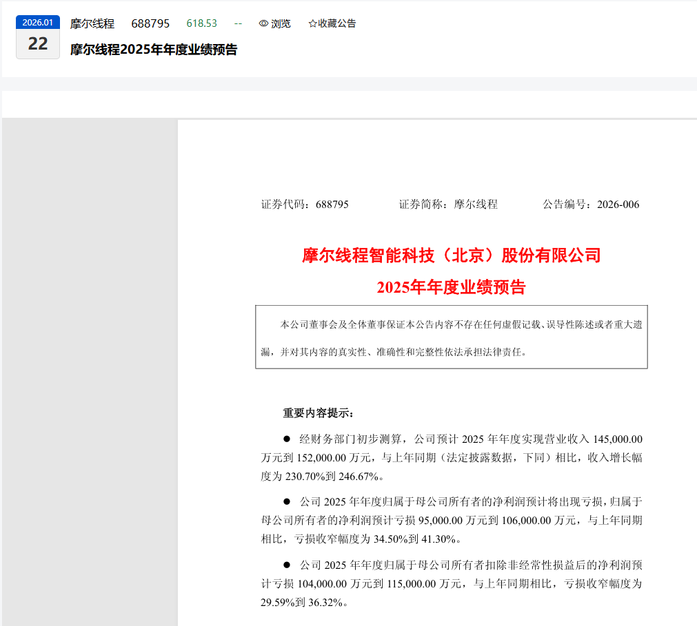 经摩尔线程智能科技(北京)股份有限公司(以下简称“公司”)财务部门初步测算: