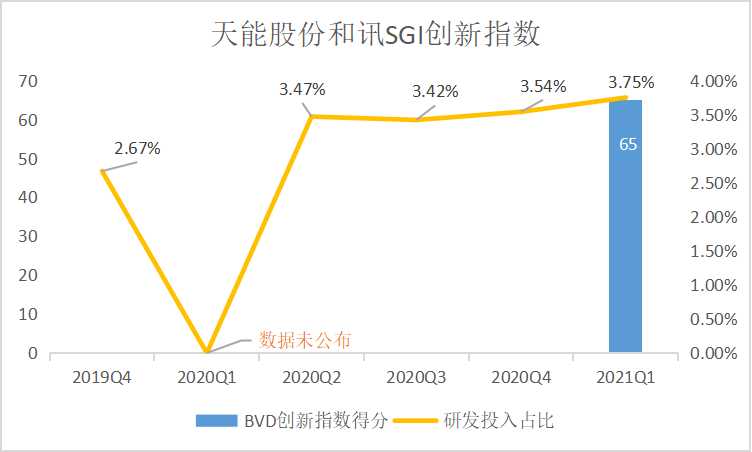 然而,锂电池行业又是一个竞争非常激烈的资本密集型行业,对研发投入要求较高,就近期数据来看,天能股份各季度研发投入占比还不到4%,公司的和讯SGI创新指数也较低。