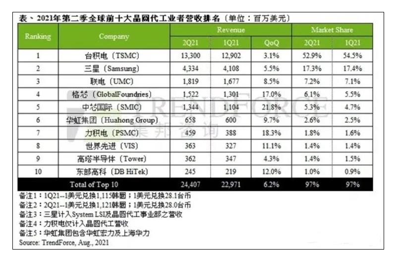 近日,集邦资讯公布了Q2季度全球晶圆代工市场最新Top10排名,我们来看一看这一季度的新排名,有了什么样的变化。