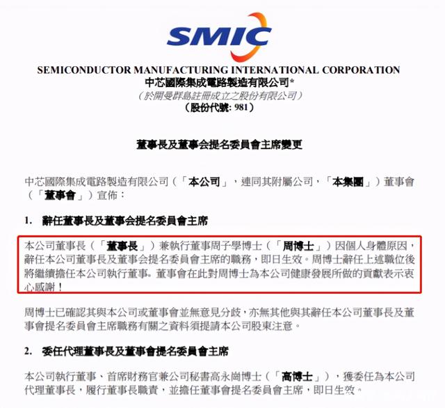 但就在9月3日晚间,中芯国际董事长周子学也官宣离职,同样也是因为个人原因辞任董事长和董事会提名委员会主席的职务,我们从中芯国际的公告可以看到,这次周子学是因为个人身体原因离职,毕竟现在的周学子年龄已经超过了65周岁,早到了该退休的年龄了,所以周学子也是选择了功成身退;