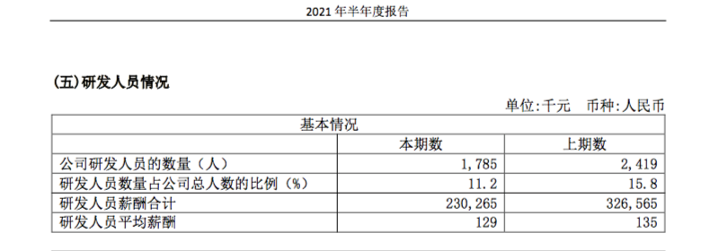 以中芯国际公布的财报数据为例,在薪资方面,截至2021年6月30日,中芯国际研发人员数量达1785人,去年同期2419人;研发人员薪酬合计2.3亿元,去年同期3.26亿元;研发人员平均薪酬12.9万元,不及去年同期的13.5万元。