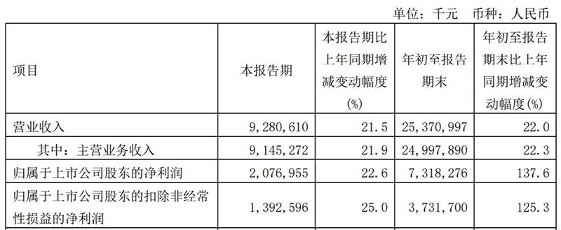 中芯国际在三季报中披露,公司1-9月份营业收入253.71亿元,同比增长22%;归属于上市公司股东的净利润为73.18亿元,同比增长137.6%。其中,公司第三季度实现营收92.81亿元,同比增长21.5%;实现归母净利润20.77亿元,同比增长22.6%。