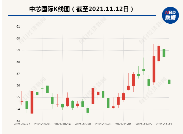 11月12日,中芯国际开盘后持续走低,午后有所回升,收报56.16元/股,下跌3.92%。