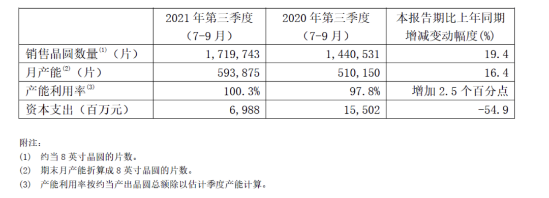今年Q3,中芯国际销售晶圆数量约为171.97万片。中芯国际在第三季度业绩说明会上表示,今年Q3,公司整体折合八英寸产能扩充至59.4万片,较上个季度末增加了约3.2万片,第四季度将有1万片新产能释放,整体来看,今年公司扩产进度如期达成。除了已有的工厂继续扩产外,北京,深圳,上海临港产能为12寸24万片的新项目也已陆续公告,其中,深圳项目有望在明年下半年进行量产。