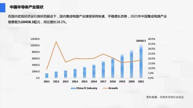 再来看我国的半导体产业现状,在国内宏观经济良好的驱使之下,我国的半导体产业市场呈现出一片光明,持稳步上升的趋势,去年一整年中国在集成电路产业的销售额达到10458.3亿元(约合1564 .56亿美元)大概占据了全球超过三分之一的市场份额。可见我国依旧是世界上最大半导体消费大国。半导体行业呈现出不断发展的局面。