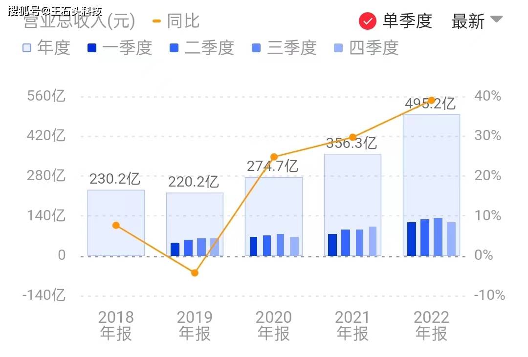 如果和2019年220亿元的营收相比,2022年直接翻了一倍多,净利润则翻了7倍。