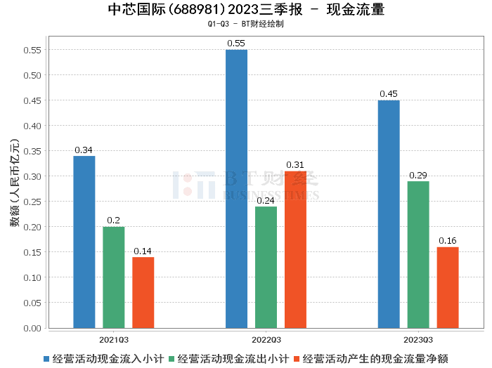 现金流量方面,中芯国际的经营活动产生的现金流量净额从上年同期的311.60亿元减少至163.48亿元,这一变化主要是由于销售商品收到的现金同比减少。经营活动现金流入小计和现金流出小计分别为449.95万元和286.48万元,与上年同期相比,现金流入有所减少,而现金流出有所增加。