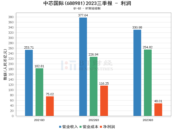 从资产负债的角度来看,中芯国际在2023年三季度末的总资产达到了3356.88亿元,较上年度末的3051.04亿元有所增长。负债合计也从上年度末的1033.99亿元增加到了1161.01亿元。净资产从2017.05亿元增长至2195.87亿元。资产负债率略有上升,从33.89%增至34.59%,显示出公司资本结构的轻微变化。